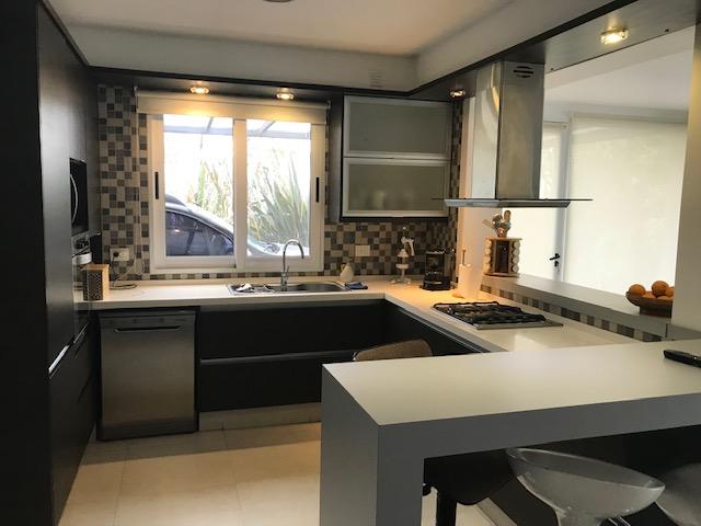 Casa moderna con paredes exteriores con revestimiento tipo Iggam. Cerramientos de aluminio vidrio doble. Calefacción central por aire frío calor. Pisos cerámicos. Totalmente remodelada en 2016.- PB: Amplio living, comedor, toilette de recepción. Dormitorio con baño en suite con vestidor más pequeño placard. Comedor diario. Cocina con mesadas de silestone, muebles en melanina, horno empotrado en acero inoxidable. Lavadero. Gran galería con parrilla totalmente cerrada. Cuarto de guardado PA: Dormitorio principal en suite con vestidor y placard de puertas espejadas. Baño revestido en porcelanato con box de ducha y bañera con hidromasaje. Ventanal a balcón. Sector escritorio, dos dormitorios con vestidor. Baño completo con revestimiento en porcelanato. En exterior: Piscina revestida en venecita con amplio deck de madera. Toldos. Parque con riego por aspersión automatizado. Guardacoche para dos autos. Las medidas consignadas son aproximadas. Las definitivas surgirán del respectivo plano. Superficie cubierta 358m2, semi cubierta 36m2