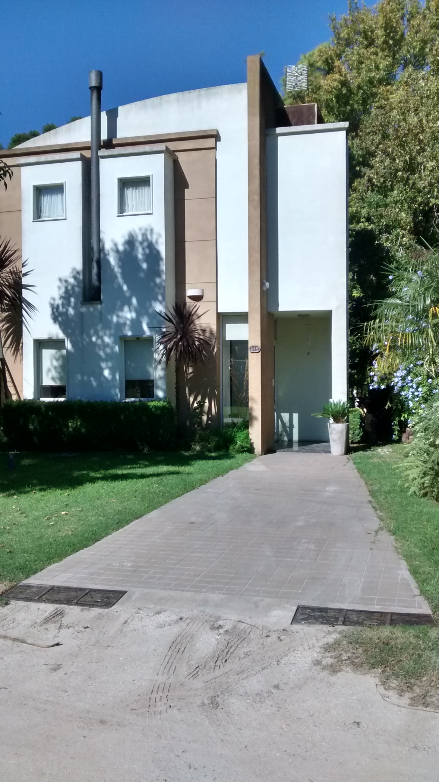 Propiedad desarrollada en dos plantas con 4 dormitorios Entrada vehicular y cochera semicubierta para dos autos. Porch de entrada, living al frente con amplios ventanales y hogar, cocina con comedor diario muy luminoso e independiente, muebles completos, comedor amplio con salida al jardín con galería, toilette. Lavadero con entrada independiente. Todos los ambientes con amplios ventanales, muy luminoso. Planta alta: dormitorio principal con baño en suite, dos dormitorios con placard y escritorio o cuarto dormitorio , un baño completo. Exterior: galería, parrilla, jacuzzi. Cerramientos de doble vidrio, calefacción por radiadores. Ingreso al country el equivalente a 20 expensas