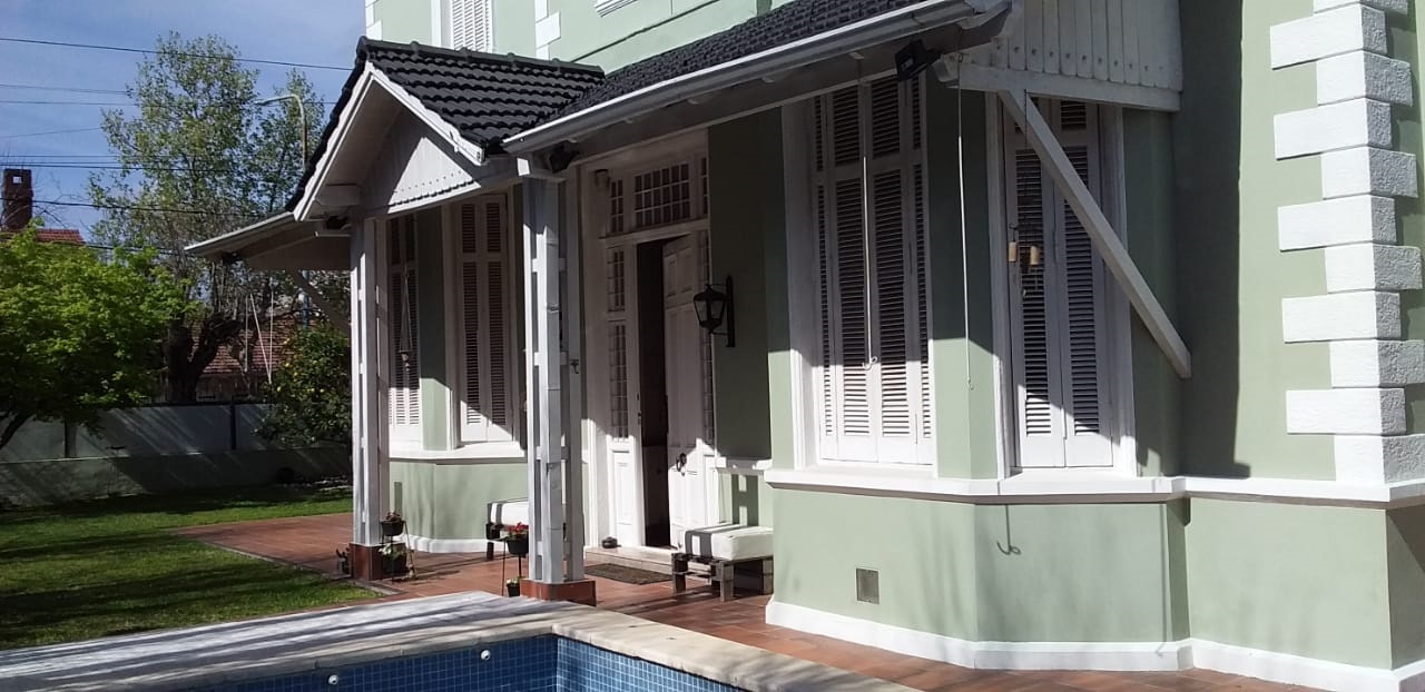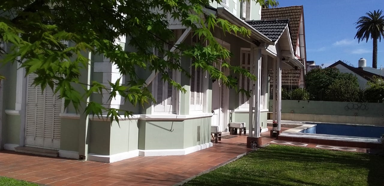 Casona reciclada a nuevo en zona residencial de Quilmes. Implantada sobre el lateral de un terreno en esquina que mide 27.80 en su frente por 15m en su lateral por la calle Libertad, la propiedad es muy luminosa. Con excelente ubicación a 5min de la Autopista La Plata/ Buenos Aires y cerca de la zona céntrica. Sobre la calle 25 de Mayo se encuentra la entrada al garaje para un auto grande o dos autos chicos, con portón automático. La misma cuenta con segundo lavadero, sótano con sala de máquinas y baulera. Y en la planta alta de la misma se encuentra departamento de servicio con 2 habitaciones, baño completo y salida a balcón. Por la calle Libertad se encuentra el acceso principal con un hermoso jardín. Importante entrada a la casona rodeada de galería, puerta de entrada de doble altura de madera maciza con muy buenos herrajes. Una vez dentro de la propiedad , hall de distribución con importante escalera de roble al frente , a la derecha living comedor con ventanales al frente y sobre el lateral, hogar revestido mármol y ornamentaciones en madera ( adaptado a gas) , piso de toda la planta de madera con marquetería, cielo raso en madera lo que aporta calidez al ambiente, la cocina separada es amplia , con muebles blancos completos, mesada y revestimiento en granito, cocina de 5 hornallas, barra para desayunar, ventanal al sector de piscina, desde la cocina se sale directamente a la zona de piscina y parrilla. Lavadero. A la izquierda del hall de entrada nos encontramos con la sala de juegos con hogar también revestido en mármol y madera (adaptado a gas), baño de planta baja y escritorio biblioteca con puertas ventanas con salida a lateral a la otra zona de jardines. Debajo de la escalera hay un depósito con dos accesos uno desde el comedor y otro desde el hall Planta alta: Hall de distribución a 4 dormitorios, uno de ellos en suite con vestidor y bañera de hidromasaje. Los otros 3 dormitorios comparten un baño completo, todos con excelentes placares y amplios ventanales. Exterior: patio a la salida de la cocina, piscina de 9x4, parrilla y baño de pileta. Galería amplia. Muy buen jardín. La propiedad tiene aire acondicionado frío calor en todos los ambientes. Calefacción por radiadores. Paredón perimetral. Todos los servicios. Y todo se encuentra en perfecto estado de uso y conservación.